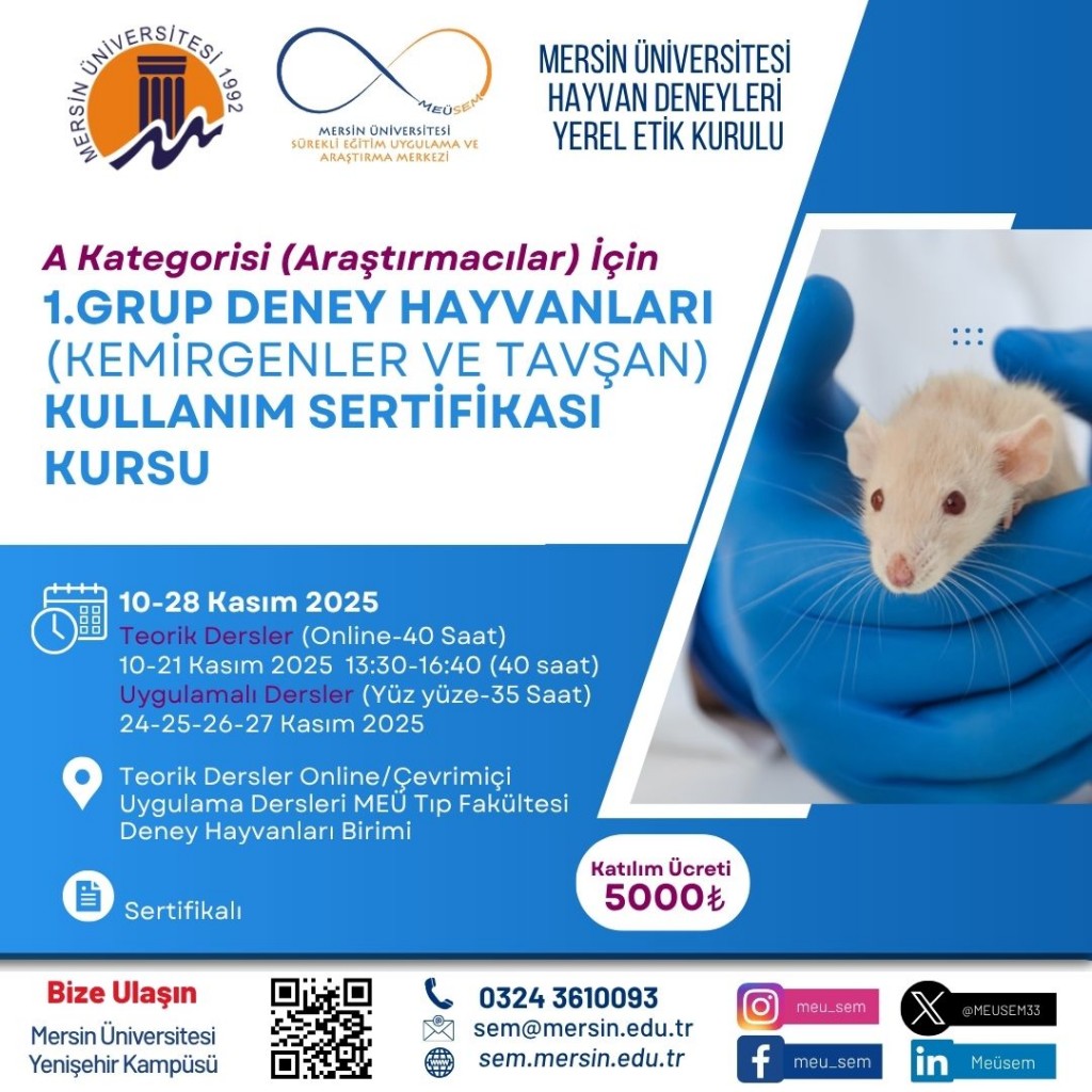 1.grup Deney Hayvanları A Kategorisi (araştırmacılar) İçin Kullanım Sertifikası Kursu