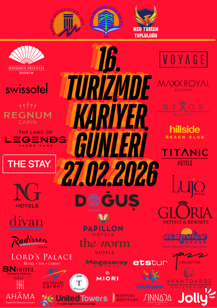 Mersin Üniversitesi Turizm Fakültesi ve Turizm Topluluğu tarafından, öğrencilere staj ve iş imkânı sağlamak amacıyla düzenlenen "16. Turizmde Kariyer Günleri" büyük bir katılımla gerçekleştirildi. Fakülte binasında düzenlenen etkinlik, öğrenciler
